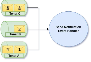 Depending on Business Domain we work in, we may have hundreds of Tenants, so running hundreds of Message Consumers may be far from ideal. For those situations, Ecotone by default use Round-Robin strategy to **consume using single process**. This means that we will be fetching from each Tenant in order: