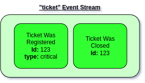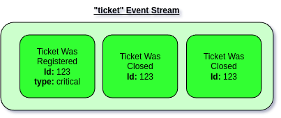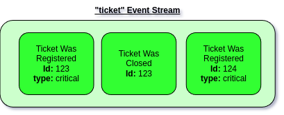 Above we've stored Events for Ticket with id "123". However we can store Events from different Tickets in the same Event Stream.