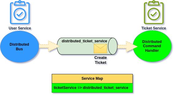 Let’s suppose **User Service** wants to create Ticket by sending Command to **Ticket Service.**\