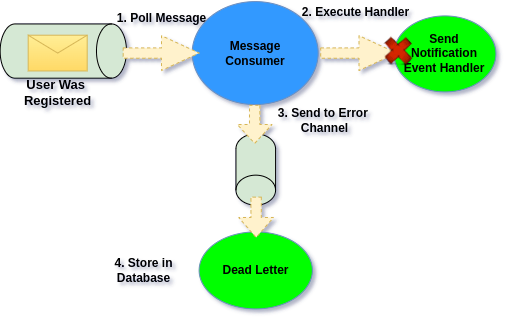 <figure><img src="https://1452285857-files.gitbook.io/~/files/v0/b/gitbook-x-prod.appspot.com/o/spaces%2F-LmAUnBnyZgZuLF2eWLn%2Fuploads%2Fgit-blob-c3deb772f8c5c4e04c33bf9de7c692d77d8dfdc4%2Ferror-handling.png?alt=media" alt=""><figcaption><p>Message is sent to Error Channel after failing</p></figcaption></figure>